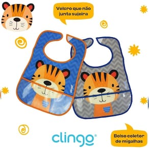 O Babador impermeável CLINGO é ideal para a hora da alimentação.