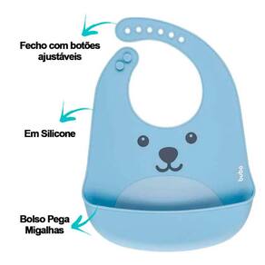 Babador Infantil - Pega Migalhas - Gumy - Azul - Buba: O Babador de Silicone Gumy da Buba é super prático e higiênico. Possui bolso pega migalhas, ideal para proteger a roupinha do bebê. O fecho com botões se ajusta facilmente ao pescoço do pequeno. Informações: • Produto: Babador com Pega Migalhas • Marca: Buba • Modelo: Azul • Tipo: Babador de Silicone • Categoria: Hora do Papa • Subcategoria: Babadores Infantis • Conteúdo: 01 Babador • Recomendação: para crianças a partir de 03 meses de idade Especificações: • Referência: 12092 • Código de Barras: 7908103720920 • Embalagem (C x A x L): 24 x 30 x 02 cm • Embalagem (Peso): 0.080 g • Material / Composição: Silicone • Certificado: Órgãos Autorizados - OCP´S (Organismos de Certificação de Produtos) Aviso: • As imagens são meramente ilustrativas • Os tamanhos e medidas são aproximados • As cores e estampas dos produtos podem ter variações • As informações são de responsabilidade do fabricante ou fornecedor Ean: 7908103720920
