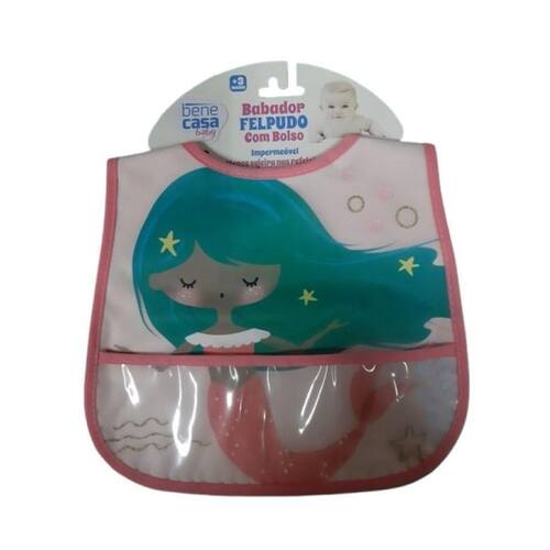 Babador sereia impermeável felpudo com bolso cata migalha - bene casa Babador estampado sereia impermeável felpudo com bolso cata migalha.