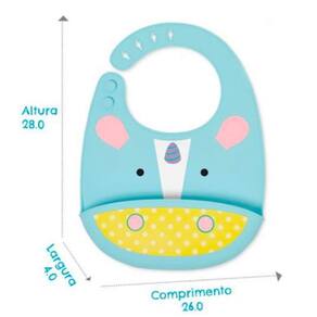 O Babador Skip Hop Zoo Fold Go Silicone Bib Unicórnio é perfeito para tornar as refeições do seu pequeno mais práticas e divertidas. Ele possui uma alça ajustável no pescoço e um bolso profundo para pegar migalhas, evitando que a comida caia no chão ou na roupa da criança.
