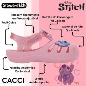 Detalhe encantador: gáspea com o personagem Stitch, trazendo um toque divertido e único para o visual.