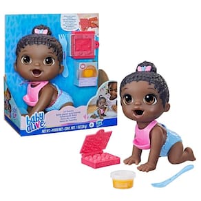 A Boneca Baby Alive Hora da Papinha Negra da Hasbro é o brinquedo perfeito para crianças que adoram brincar de faz de conta. Com ela, as crianças podem criar lanches divertidos para a boneca usando comida reutilizável e moldes inclusos. A boneca articulada de 20 cm permite diversas poses e até mesmo simular o momento de engatinhar. Além disso, a fralda de plástico pode ser aberta para realizar a limpeza da "caquinha", trazendo ainda mais realismo à brincadeira.