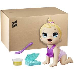 O bebê está pronto para a hora do lanche! Com a comida de boneca reutilizável e o molde da caixa de lanches, as crianças podem fazer formas de lanche para alimentar a boneca Baby Alive Lil Snacks! A aba de fraldas de mudança de clique também faz da mudança de tempo uma brisa para esta boneca que come e. Basta abrir a aba da fralda moldada de plástico, esvaziá-la e depois tocar de novo! Com poses rastejantes e sentadas, esta boneca de 8 polegadas também inclui um babador removível, 1 recipiente de comida de boneca sólida, molde de caixa de lanche e combo de garfo/colher. Baby Alive Lil Snacks boneca faz um aniversário adorável ou presente de natal para as crianças! É um ótimo brinquedo para meninas e meninos de 3 anos ou mais. Baby Alive e todas as propriedades relacionadas são marcas comerciais da Hasbro.