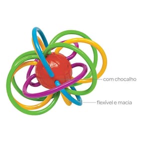 O item é maleável e possui um chocalho dentro, tem tamanho ideal para as pequenas mãozinhas. ;