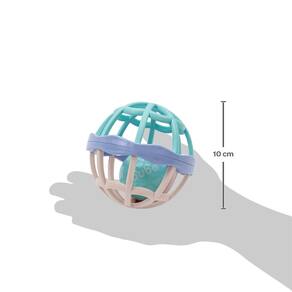 A bola é toda macia para facilitar a pega do bebê. A bolinha que vem dentro é durinha e é onde fica o chocalho.
