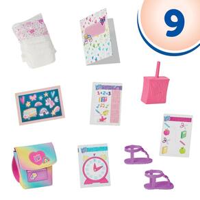 - ADESIVOS E PLANILHAS: acessórios para bonecas com tema escolar aumentam a diversão com 3 planilhas coloridas do tamanho de uma boneca que cabem na pasta e na mochila. Também podem ser decoradas com adesivos