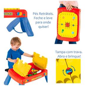 Contém: 1 mesa, 20 blocos de montar e 1 cartela de adesivos