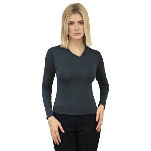 Produzida em tecido macio, com leve elasticidade, a Camiseta Ribana Feminina Manga Longa Gola V com Elastano é a escolha perfeita para você que busca conforto e estilo em uma única peça.