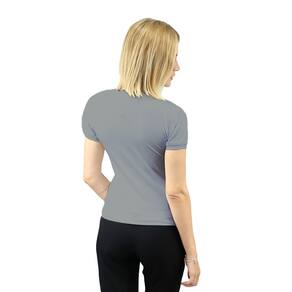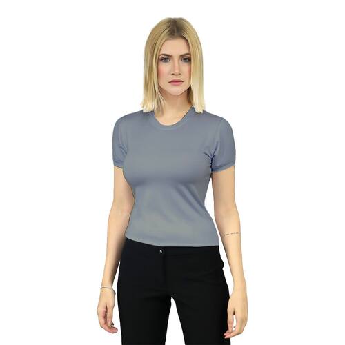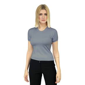 Baby Look com Elastano Manga Curta Gola Redonda - Cinza - P