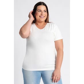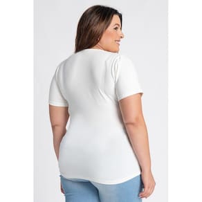 Baby look feminina plus size elaborada em malha cotton. Possui decote "V", boa elasticidade, peça leve, com toque macio. Sabe aquela básica que toda mulher precisa ter em seu guarda roupas, seja para usar como destaque do look ou sobrepostas? Esta é ela! Ela fica perfeita com jeans ou uma peça social, com sua bermuda, calça ou saia, para trabalhar, passear, ir a academia ou curtir aquele dia de descanso. Inúmeras possibilidades de uso!