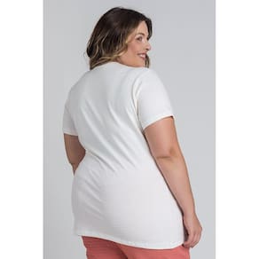Baby look feminina plus size elaborada em malha cotton. Possui decote "V", boa elasticidade, peça leve, com toque macio. Sabe aquela básica que toda mulher precisa ter em seu guarda roupas, seja para usar como destaque do look ou sobrepostas? Esta é ela! Ela fica perfeita com jeans ou uma peça social, com sua bermuda, calça ou saia, para trabalhar, passear, ir a academia ou curtir aquele dia de descanso. Inúmeras possibilidades de uso!