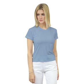 Produzida em tecido macio, com leve elasticidade, a Camiseta Baby Look Manga Curta em Malha Canelada Gola V com Elastano é a escolha perfeita para você que busca conforto e estilo em uma única peça.