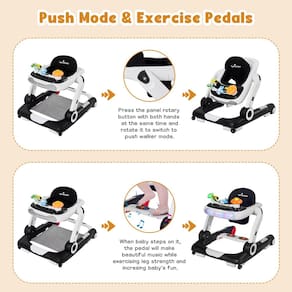 - Andador de bebê 5 em 1: o andador de bebê pode ser facilmente convertido em 5 modos, incluindo o modo de andador de bebê, modo combo bouncer, modo rocker, modo de mesa de comer, modo de empurrar a mão. Andador de bebê para atender às necessidades de diferentes estágios de exploração, crescimento e bebê juntos, adequado para bebês de 6 a 18 meses.