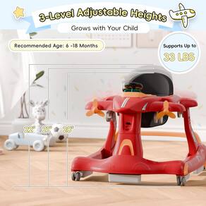 Xilingol Andador de bebê 6 em 1, andador de atividade de altura ajustável com assento acolchoado, andador infantil com rodas, andador de bebê dobrável para meninos e meninas - Design conversível 6 em 1: este andador de bebê versátil é projetado para bebês de 6 a 18 meses, ajudando-os a aprender a andar e fortalecendo os músculos das pernas. Ele transita através de seis modos: modo de assistência aos pais, modo de caminhada automática, modo cadeira de jantar, modo push walker, modo carrinho de empurrar e modo avião de brinquedo. O design envolvente do avião atende a várias necessidades de desenvolvimento e mantém seu bebê entretido. - Conforto para bebês: o andador oferece 3 posições de altura ajustáveis, permitindo que ele cresça com seu bebê e apoie seu desenvolvimento em diferentes estágios. A almofada de assento curvada evita pernas em forma de O e é removível e lavável para facilitar a limpeza. Feito de material PP respirável de alta qualidade, garante conforto e segurança para o seu filho. - Segurança confiável: Certificado pela ASTM e CPSIA, este andador de atividades para bebês garante a máxima segurança. Possui um amortecedor de segurança protetor para proteger a cabeça do seu bebê de colisões e um encosto alto ergonômico para suporte ideal da coluna. Cinco almofadas antiderrapantes evitam quedas e escorregões, e o amplo espaçamento das rodas garante um movimento estável e seguro. - RODAS FLEXÍVEIS E AJUSTÁVEIS: Equipado com 4 rodas universais lisas e silenciosas, este andador garante movimento flexível sem perturbar os membros da família. As rodas traseiras podem ser ajustadas para velocidade: gire no sentido anti-horário para um movimento mais rápido, no sentido horário para movimentos mais lentos, ou bloqueie-as para maior segurança. As rodas dianteiras giratórias de 360° proporcionam direção sem esforço. - Centro de atividades interativas: com controles de avião realistas, como volante, câmbio, espelhos retrovisores e botões de luz, este andador oferece uma experiência de pilotagem autêntica para o seu bebê. Música vívida e luzes estimulam os sentidos do seu filho, tornando a brincadeira divertida e educativa. O painel de controle removível funciona como um brinquedo independente ou bandeja de jantar. - Fácil de guardar: quando não estiver em uso, o andador se dobra em um tamanho compacto para facilitar o armazenamento sob o sofá ou cama. Seu design leve e dobrável o torna conveniente para viagens, garantindo que seu bebê possa desfrutar de seu centro de atividades favorito em qualquer lugar. Combinando funcionalidade com diversão, é perfeito para uso doméstico e em movimento.
