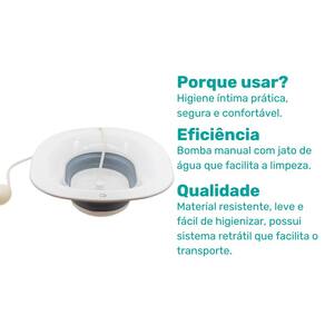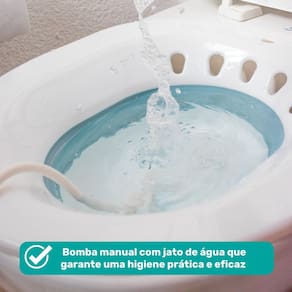 Com design ergonômico, encaixa-se perfeitamente sobre o vaso sanitário e acompanha bomba manual que produz um jato de água direcionado, tornando o processo de limpeza mais eficiente e confortável.