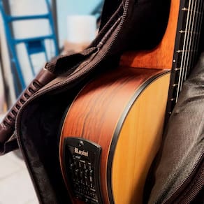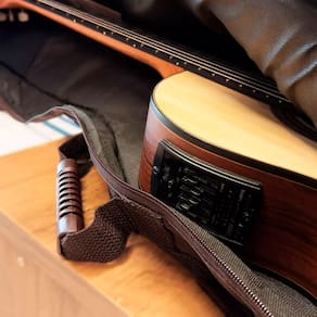 Proteja seu violão Flat com a Capa Bag Almofadada Marrom Cargo, projetada para oferecer conforto e segurança no transporte.