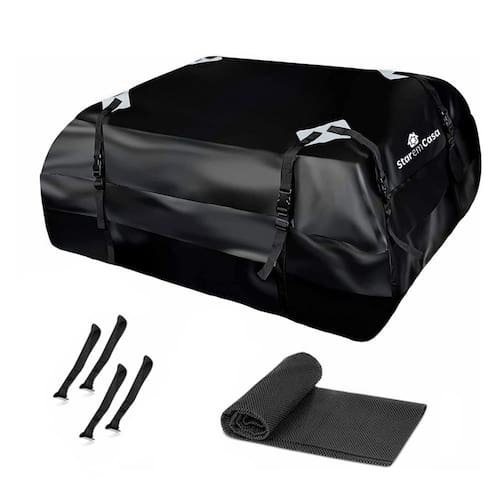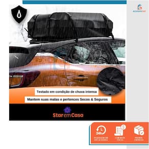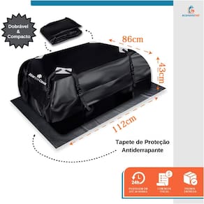 - Fecho de zíper grande com abas que permanecem secas; - Compatível com todos os veículos, com ou sem barras; - Correias com fivelas para fácil conexão; - Com esteira antiderrapante para o teto; - À Prova d’água.
