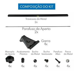 Projetado e desenvolvido para suportar até 45 kg de peso máximo, desde que distribuído de forma uniforme e equilibrada; Manual de instruções, para orientar a montagem, sua capacidade de transporte, regras de utilização e outros informes; Não amassa e nem risca o veículo; Cor preto; Fabricado em Aço; Não exige furações; Fácil instalação; Ótimo acabamento; Excelente resistência.