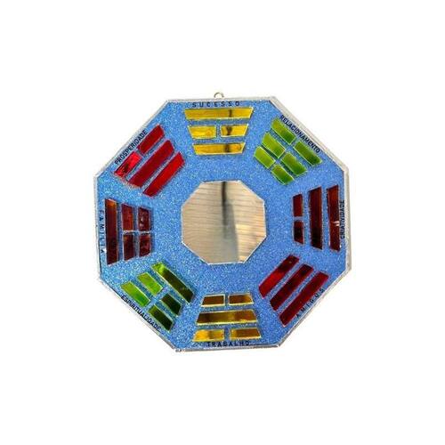 Baguá Feng Shui Vidro Colorido Azulado Octogonal 16 Cm