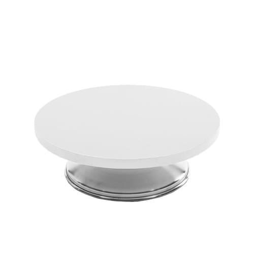 Imagens meramente ilustrativas. De cor BRANCO. O suporte para bolo Bailarina, é equipado com um suave prato giratório em MDF, com formica e rolamento com pino de nylon, oferecendo o máximo de aproveitamento na hora da modelagem. Confira e adquira o seu Medidas aproximadas Bailarina centímetro : Diâmetro: 250mm. 25cm. Altura: 10cm. Ean: 7899044431078
