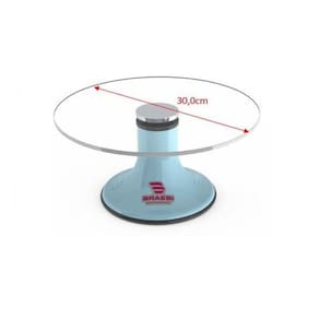 - Base em polipropileno- Vidro de 30cm de diâmetro, incolor e temperado, espessura de 6mm com borda lapidada;