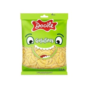 Bala de gelatina em formato de bananas. Colorida e aromatizada artificialmente. Pacote contém aproximadamente 200 unidades. Peso líquido total 1 kilogramas.