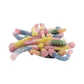 Bala de goma ácida em formato de minhocas Gomets. Peso total da embalagem 600 gramas.