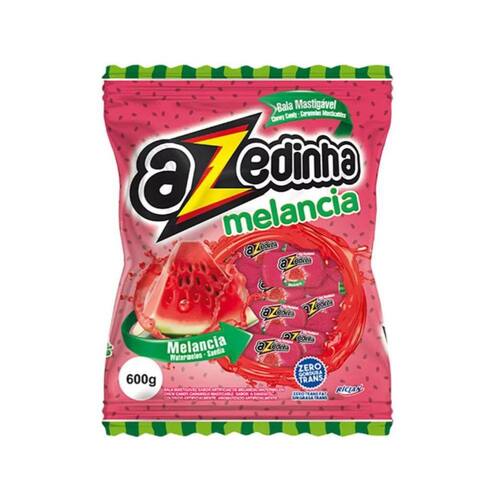 Bala mastigável sabor melancia ácida Azedinha. Peso total da embalagem 600 gramas.
