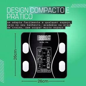 Balança Bioimpedância Digital Inteligente com Aplicativo Bluetooth Balança Digital Bioimpedância 180KG Com Aplicativo de Celular Medir Massa Corporal IMC Consultório Balança Digital Smart Corporal - BioImpedância e IMC Gordura Corporal Perfeita para quem busca uma vida saudável Balança eletrônica com Bluetooth, suporta até 180KG Além de medir seu peso, você consegue informações como IMC, Gordura, e massa muscular, água, gordura visceral, ossos e metabolismo. Tudo através do aplicativo. Conectando a balança com o aplicativo você pode ter acesso a indicadores sobre sua saúde, além de poder acompanhar seu progresso a partir de gráficos e histórico; - Suporta até 180 kg; - Dados em tempo real; - Conexão via Bluetooth; - Display de LCD Digital 4 dígitos Sistema de Sensores de Alta Precisão Graduação: 10 g Capacidade: 180 kg ON Auto - Liga automaticamente OFF Auto - Desliga automaticamente Fonte de Alimentação: 2 Pilhas AAA Mede peso, percentual de gordura e percentual de água, metabolismo, massa óssea e massa muscular Conecte-se a balança utilizando o aplicativo Conexão via Bluetooth 4.0 Duas unidades de medida: kg/lb Compatível: Com qualquer aparelho celular Registra os dados de até 8 Usuários pelo APP Aviso de Sobrecarga Indicação de carga da Bateria Homologação Inmetro: CE-BRI/IDEAL 00132/22-01 Marca: Não Informado