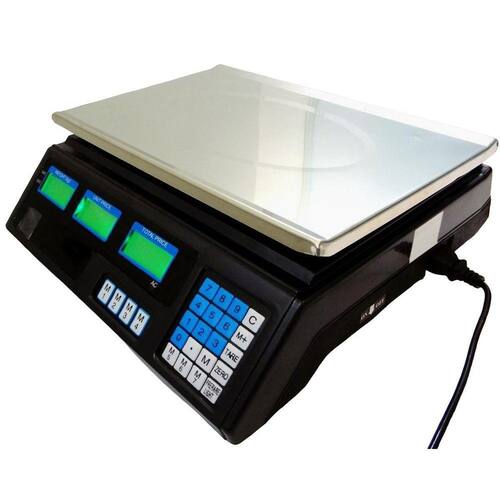 Balança Comercial Digital 40 Kg Tipo de balança Digital Capacidade máxima 40 kg Sensibilidade 2 em 2 gramas Material do prato: Aço inoxidável Características: - Medidas da balança: 34,5x24x10,5 cm - Precisão: 1/3000 f.S Excelente para seu comércio na cor preta