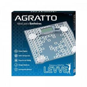 BALANÇA CORPORAL LEVVE BL04 AGRATTO A Balança Digital Levve é precisa, eletrônica e realiza a pesagem com rapidez e eficiência. Sua graduação de alta precisão possui 4 sensores de pressão que pesa em quilos ou em libras. Com visor digital e função de zeragem automática entre as pesagens.