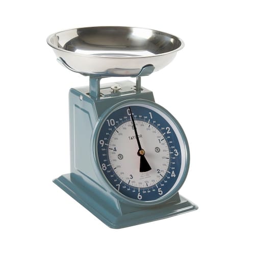 Balança mecânica de cozinha Taylor com tigela, pesa até 11 libras, mede em gramas e onças, balança de alimentos para cozinha, azul tempestade