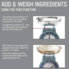- RECALIBRÁVEL: redefina esta escala para zero com o botão na parte superior, abaixo do suporte da tigela. Faça isso ao trocar os recipientes ou pesar ingredientes para garantir leituras precisas.