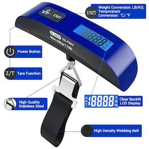 balança de bagagem digital peso bagagem balança acessórios de viagem essenciais com bolsa de gancho azul pacote portátil - ?Tela LCD retroiluminada brilhante?: Uma tela LCD transparente retroiluminada da balança de bagagem Dr.meter para visibilidade diurna e noturna para exibir com precisão o peso e a temperatura - ?Design de viagem?: Durável e resistente para resistir ao teste do tempo e viagens. Portátil e fácil de guardar em casa ou na sua mala. Tecnologia de tinta de borracha; Aderência manual texturizada utilizada - ?Durabilidade e precisão?: A balança da mala tem capacidade de 110 lb/50 kg. Precisão de até ± 1% e 1 grau Celsius, a graduação é de 0,01 kg/0,01 kg //1 ?/-17 °C - ?Fácil de usar?: A balança de viagem tem unidades de conversão de lb/kg, F/C, funções de bloqueio de dados e tara na ponta dos seus dedos - ?Multifunção?: a balança digital de peso da mala com tela LCD retroiluminada brilhante e a temperatura, tem tara, indicação de bateria fraca, indicação de sobrecarga, bloqueio de dados e função de desligamento automático são o excelente ajudante para viajar