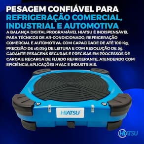 A Balança Digital Programável Hiatsu BPH-100W é a solução ideal para profissionais que atuam com sistemas de ar-condicionado, refrigeração comercial e automotiva. Projetada para oferecer pesagens precisas, rápidas e seguras, ela garante total controle durante o processo de carga e recarga de fluido refrigerante.