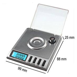 Esta escala de quilates é especialmente projetada para ser Utilizado como escala de ouro, miligrama, joalheria, laboratório, diamante e escala de quilate. É uma mini balança profissional de alta precisão. Recursos: Escala digital precisa e profissional em miligramas - capacidade de 20g e precisão de 0,001g. Grande display lcd azul para fácil visualização das unidades diferentes: g / oz / ozt / t / ct / gn. Mini balança digital com alta precisão, perfeita para pesagem de ouro ou joias, remédios em pó ou outras pesagens pequenas. A função de contagem botão pcs oferece uma contagem precisa e a função de pesagem de tara garante resultados mais precisos. Com proteção contra o vento para evitar influenciar a precisão da pesagem pela interferência do ambiente externo. O recurso de desligamento automático economiza bateria para uso de longa duração. Tamanho mini compacto e fácil de transportar, leve-o para qualquer lugar. Especificações: Cor: prata Material: abs Capacidade: 0,001g - precisão: 20g Unidades: g / oz / ozt / t / ct / gn comutável Display: lcd 5 dígitos Luz de fundo: azul Funções: on / off, units, tare, pcs Tempo de desligamento automático: 1-5 minutos ajustável Fonte de alimentação: 2 1,5 v aaa não incluída Tamanho do item: aprox. 115 66 35 mm Peso do item: aprox. 72g Lista de pacotes: 1 Escala digital 1 10g peso de calibração 1 Prato de pesagem 1 Pinça 1 Bag 1 Manual do usuário Marca: Não Informado