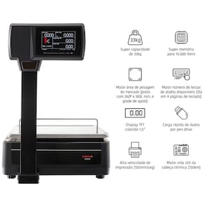 Inovação em design e tecnologia o display TFT colorido de 1,5 mostra informações precisas em alta resolução, além da imagem do item sendo pesado na operação, tanto para o operador quanto para o consumidor.