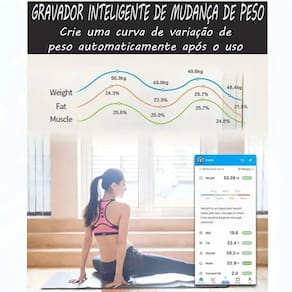 Balança Digital de BioimpedânciaA balança digital de bioimpedância monitora 12 parâmetros de sua saúde através de seu exclusivo sistema de bioimpedância com monitoramento direto em seus smartphone Android ou IOS via bluetooth, utilizando o aplicativo exclusivo OKOK-International.Permite uma medição precisa e completa, a balança digital de bioimpedância proporciona uma experiência do usuário de maior aproximação com o seu corpo, auxiliando nos cuidados da saúde.- Display de LCD Digital - 4 dígitos;- Sistema de sensores de alta precisão;- Capacidade: 180kg;- Graduação: 10g;- Liga e Desliga automaticamente;- Alimentação: 2 pilhas AAA (não inclusa) - Indicação de carga de bateria;- Conecte-se a balança utilizando o aplicativo;- APP: OKOK-INTERNATIONAL (Escaneie o QRcode localizado embaixo da balança para fazer o donwload do APP e registre as suas informações básicas);- App compatível com IOS e Android;- Conexão via bluetooth 5.0;- Mede e registra o peso corporal, IMC, gordura corporal, água corporal, gordura visceral, massa muscular, massa óssea, proteínas, obesidade, idade do corpo, LBM e metabolismo;- Duas unidades de medidas: kg/lb;- Aviso de sobrecarga.A Balança é Capaz de Detectar:- Peso Corporal- IMC- Gordura Corporal - Água Corporal - Gordura Visceral - Massa Muscular - Massa óssea- Proteinas - Obesidade - Idade do Corpo - LBM (peso corporal magro)- Metabolismo Registra os dados de até 07 usuários pelo APP.Recomendações:- Atenção! Não deixe sua balança sofrer quedas bruscas;- Mantenha sua balança em um ambiente limpo e seco;- Nunca sobrecarregue a balança;- Não utilize esse produto quando ele estiver danificado ou quebrado;- Mantenha fora do alcance de crianças.SKU: 2006