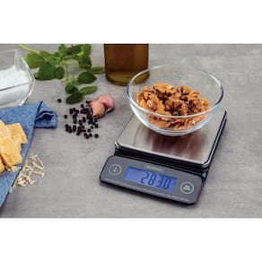 Com capacidade máxima para três quilos, ela tem base em aço inox de alta precisão e oferece dois sistemas de medida: métrico (g) e imperial (lb:oz).