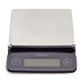 INFORMAÇÕES GERAIS DA BALANÇA DIGITAL PARA COZINHA TRAMONTINA EM AÇO INOX - Balança digital de alta precisão com base em aço inox. - A balança de precisão oferece dois sistemas de medida: Métrico (g) e Imperial (lb:oz); - Indicação de pilhas fracas e de sobrecarga; - Com sensor extensômetro de alta precisão; - Com função de tara; - Desligamento automático; - Capacidade máxima: 3 Kg; - 2 pilhas AAA de 1,5 V (não acompanham o produto).
