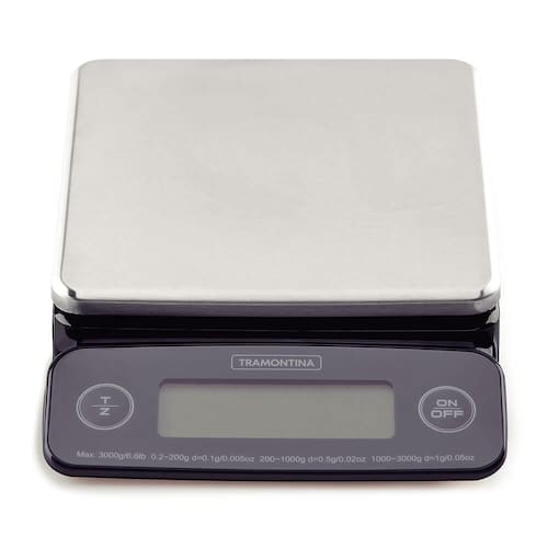 DESCRIÇÃO DA BALANÇA DIGITAL PARA COZINHA TRAMONTINA EM AÇO INOX - A balança digital de alta precisão para cozinha Tramontina Adatto com base em aço inox é essencial para quem deseja garantir a medida certa de todos os ingredientes da sua receita. - Com capacidade máxima para três kilos, ela tem base em aço inox de alta precisão e oferece dois sistemas de medida: métrico (g) e imperial (lb:oz). - Para maior praticidade, ela possui indicação de pilhas fracas, sobrecarga, função de tara e ainda conta com desligamento automático. - Uma balança com a qualidade Tramontina, que você já conhece e confia!