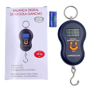 Super compacta Desligamento automático Função tara Pesa até 50 kg. Balança digital com gancho. Visor digital de aproximadamente: 3,2cm x 2cm Display de 4 dígitos Balança portátil digital Ótima precisão Função tara Fácil utilização Leve e prática Capacidade mínima de 0,2kg Material: ferro e plástico Alimentação de energia: 2 pilhas aaa Pilhas inclusas Peso: 300 gramas Dimensão aproximada: 21m x 7cm x 2,5cm