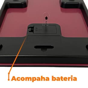 A balança digital da Casambiente é calibrada com 4 células de alta precisão que garantem uma medida precisa na hora de pesar seus alimentos. Possui plataforma de vidro temperado na cor vinho e visor de cristal líquido. A balança tem botão para ligar, tarar (zerar o peso) e para alterar a unidade de medida, o desligamento é automático em 90 segundos e pode ser forçado segurando o botão de ligar por 3 segundos, assim você economiza ainda mais bateria.