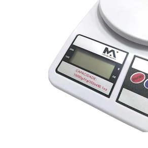 Balança Digital de Precisão Maxmidia 10Kg MAX-211033 Balança para uso doméstico e profissional com ótima precisão, podendo ser utilizada para pesar alimentos na cozinha, laboratórios químicos, padarias, nutricionistas ou qualquer outra atividade que necessite de pesos precisos. Características:ean: 7899454402521Marca: MaxmidiaModelo: MAX-211033Cor: BrancoSistema de Pressão com Alta PrecisãoVisor em LCDCapacidade: 10Kg x 1gDesligamento Automático ou ManualModos de Pesagem: g/ozFuncionamento: 2 Pilhas AA 1.5v não inclusas Divisão de Escala: 1g Dimensões da Embalagem:Altura: 19cmLargura: 25cmProfundidade: 4cmPeso: 0,333KgGarantia: 3 Meses Ean: 7899454402521