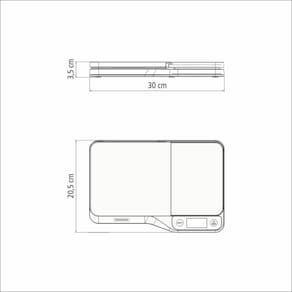 Com tábua de corte e bandeja separadas. Fácil de lavar;Indica o volume de água e leite;Dois sistemas de unidade de peso: g e lb:oz conversíveis;Sistemas de unidades de dois volumes: ml e fl?oz conversíveis;Indicação de pilha fraca e de sobrecarga;Com sensor de extensômetro de alta precisão;Função de tara;Desligamento automático.Capacidade máxima: 5 Kg2 pilhas de 1,5 V (AAA) (não acompanham o produto) Ean: 7891116169254
