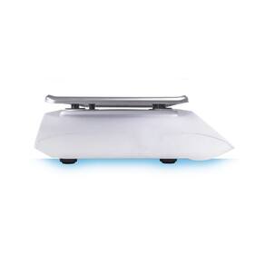 - Prato de Pesagem: Em aço inoxidável e com centro rebaixado, para evitar o escoamento de líquidos sobre os displays;