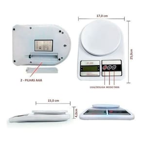 Balança Eletrônica Digital De Cozinha Pesa De 1 Gr Até 10 Kg - Visor Digital - Desliga Automaticamente - Capacidade de 1 g até 10 kg - Equipamento de alta precisão - Graduação 1 em 1 grama - Função Tara Zerar - Função pesa em grama e oz. Perfeita para pesagem de alimentos na sua cozinha Material Plástico Medidas: 23 x 16 cm Diâmetro do prato: 14,5 cm Caixa contém: 1 balança, 1 Manual do Usuário Fonte de Energia: 2 pilhas AA Não Inclusa Ean: 7893590300345
