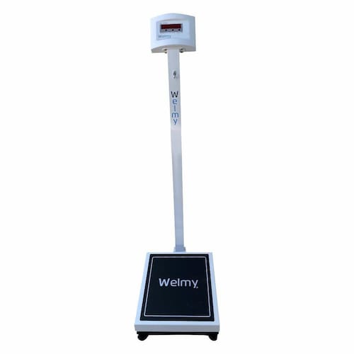 Balança Farmácia Digital W200 / 200kg 100g Welmy Modelo W 200/100 Capacidade 200 kg Carga Mínima 2 Kg Divisão 100 g Dimensão 34 x 39 cm Display com 06 dígitos em: LED vermelho ou LCD com backlight; Teclado membrana em policarbonato de alta resistência; Função: TARA até a capacidade máxima da balança; Fonte de alimentação externa de 90 a 240 VAC com chaveamento automático Bivolt ; Consumo: 08 VA; Plataforma e coluna de aço carbono. Base em aço carbono, acabamento bicromatizado; Pés reguláveis em borracha sintética; Tapete antiderrapante; Antropômetro em alumínio anodizado e litografado com medida de: até 2 metros com fração de 0,5 cm; Entrada para bateria 12VCC externa, apenas para balanças sem bateria interna; Pintura: Epóxi na cor branca. Homologada pelo INMETRO e aferida pelo IPEM. Opcionais: Saída de dados RS 232 para computador; Kit adaptador RS 232 para USB. Peso bruto: 12,400 kg - Peso Liquido: 10,900 kg Altura cm : 125 Largura cm : 35 Comprimento cm : 51 Volume m : 0,2231 Ean: 0729555530106