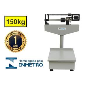 Capacidade para 150 kg, divisões de 100 g; Pesagem mínima de 2 kg; Plataforma na medida de 380 x 290 mm, em aço carbono; Altura da balança de 58 cm e altura da coluna de 43 cm; Pés em borracha sintética reguláveis; Régua graduada em aço cromado de 0 a 140 kg; Cursor em aço inoxidável; Acabamento de pintura em esmalte na cor cinza martelado; Tratamento de superfície nas peças internas zincagem aumentando a durabilidade do produto; Tampa de proteção para estribos evita perda de peças durante o transporte;
