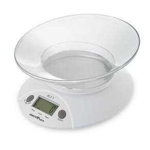 A Balança também possui display digital e visor de cristal líquido de 4x2cm, garantindo precisão. Com capacidade máxima de 5kg, permite verificar o peso de diversos tipos de alimentos.